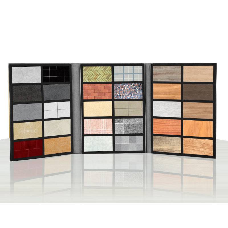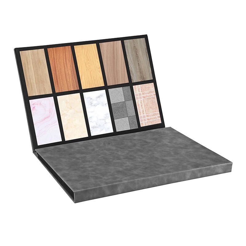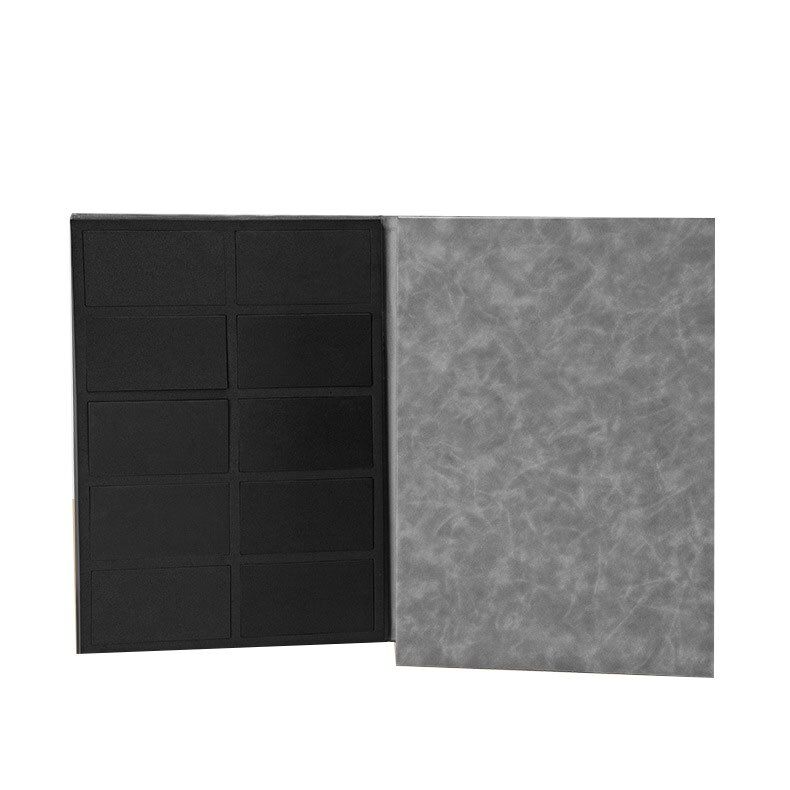 This sample folder can hold 8PCS flooring samples for each page, the high-density EVA foam was used inside to create the perfect nests where the product samples rest, we can custom the design, thickness and page amount according to your needs and add half-moon print finger position to replace the sample easier.