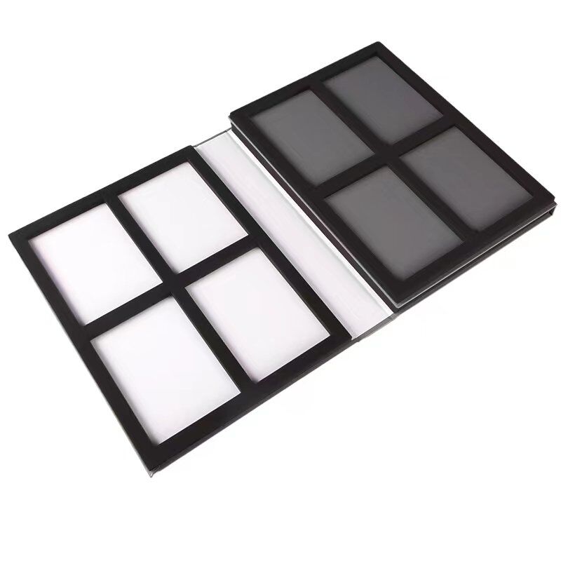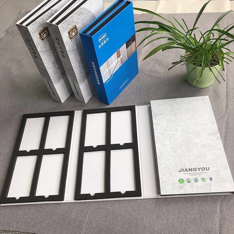 This model is 4 sample slots flooring and decking sample booklet, you can load 4PCS flooring samples each page, we can custom the sample slots size according to your needs, there is a waterproof and wearing layer finish to avoid scratching during using.