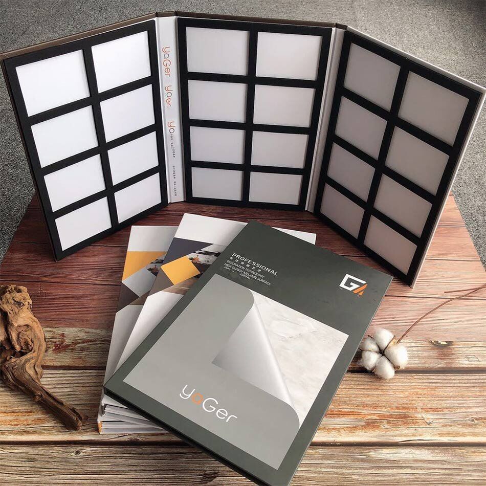 Yes, we can make the full appearance and interior design for you for your stone sample books/ box, you just need to send us your company logo.
