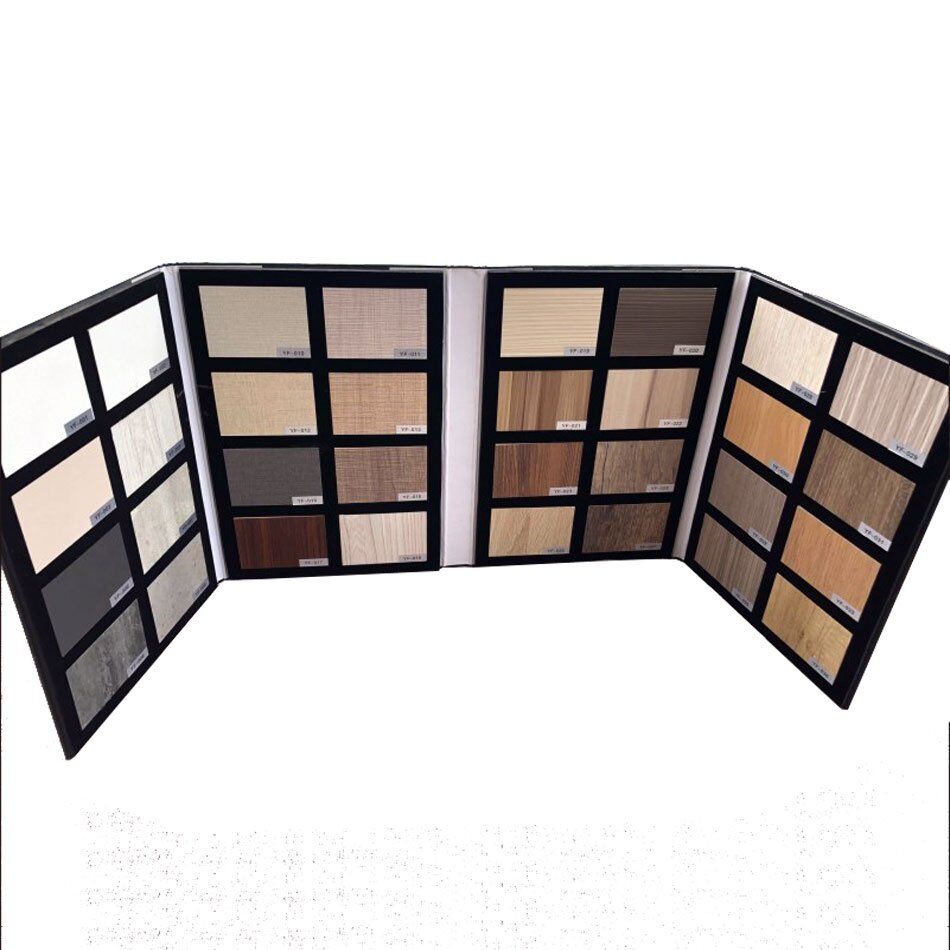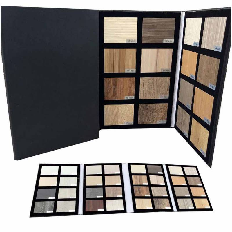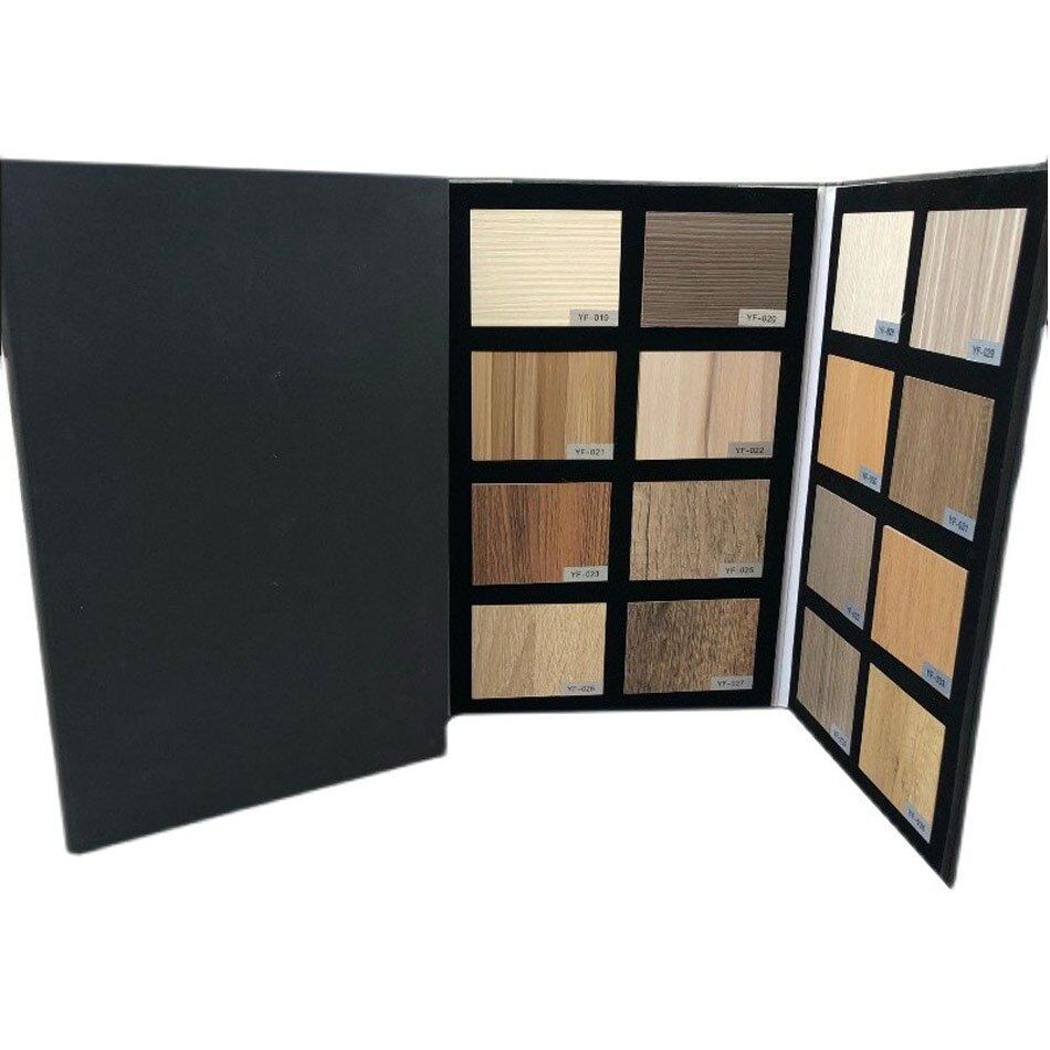 This sample folder can hold 8PCS flooring samples for each page, the high-density EVA foam was used inside to create the perfect nests where the product samples rest, we can custom the design, thickness and page amount according to your needs and add half-moon print finger position to replace the sample easier.